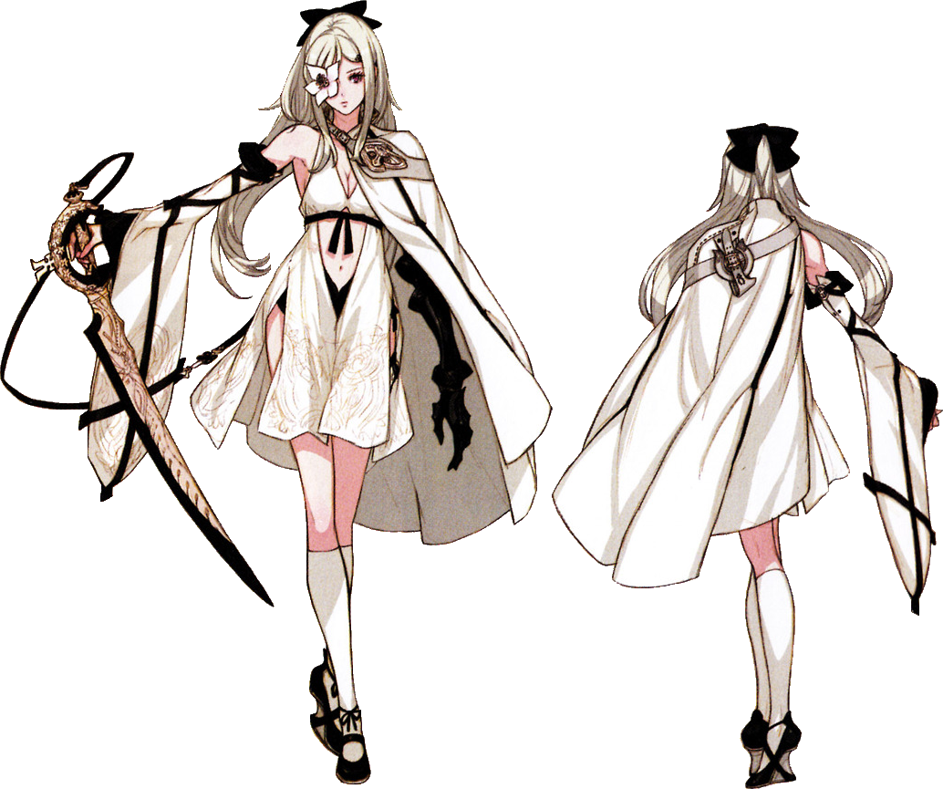 Выглядит: широкий меч из белого металла с гардой. Общая длина составляет 106 см. Рукоять с гардой достигают около 40 см. По краю лезвия и внутри гарды черное окаймление. Гарда широкая, массивная, украшенная мелкими пятилистными цветками в виде полукруга вдоль рукояти. Где-то в центре полукруга гарды с внешней стороны можно заметить странную статуэтку, напоминающую древний символ. На лезвии выгравирован диковинный рисунок, напоминающий замысловато сложенную ткань, а в её складках нарисовано солнце с крестом.
